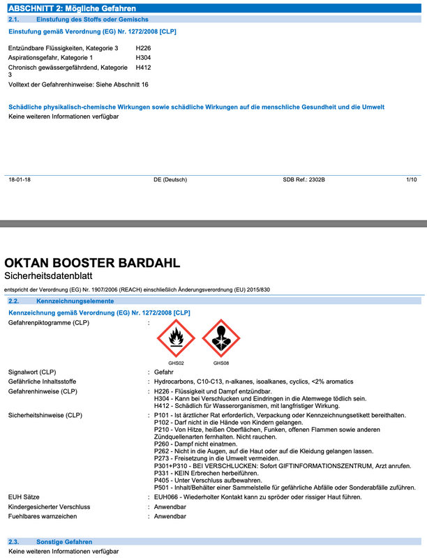 - erhöht die Oktanzahl bis zu 5 Punkten